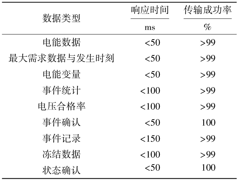 表1 数据传输成功率和响应时间标准