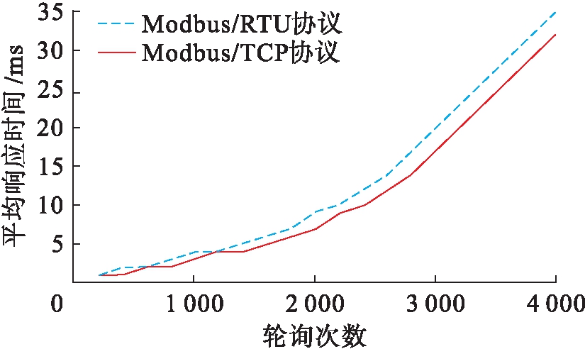 图5 Modbus/RTU协议和Modbus/TCP协议的平均响应时间