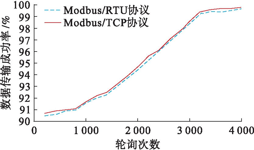图6 Modbus/RTU协议和Modbus/TCP协议的传输成功率