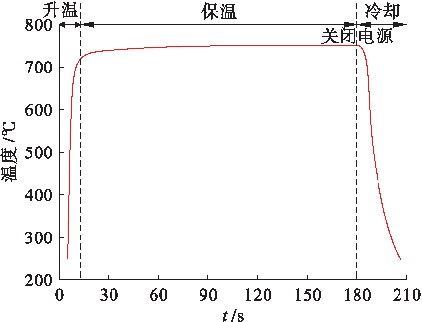图1为微波源功率600 W时,PZO薄膜在微波照射下的加热曲线.通过调控输出功率,令加热速率为70 ℃/s,加热温度为750 ℃,整个照射时间为60~300 s.