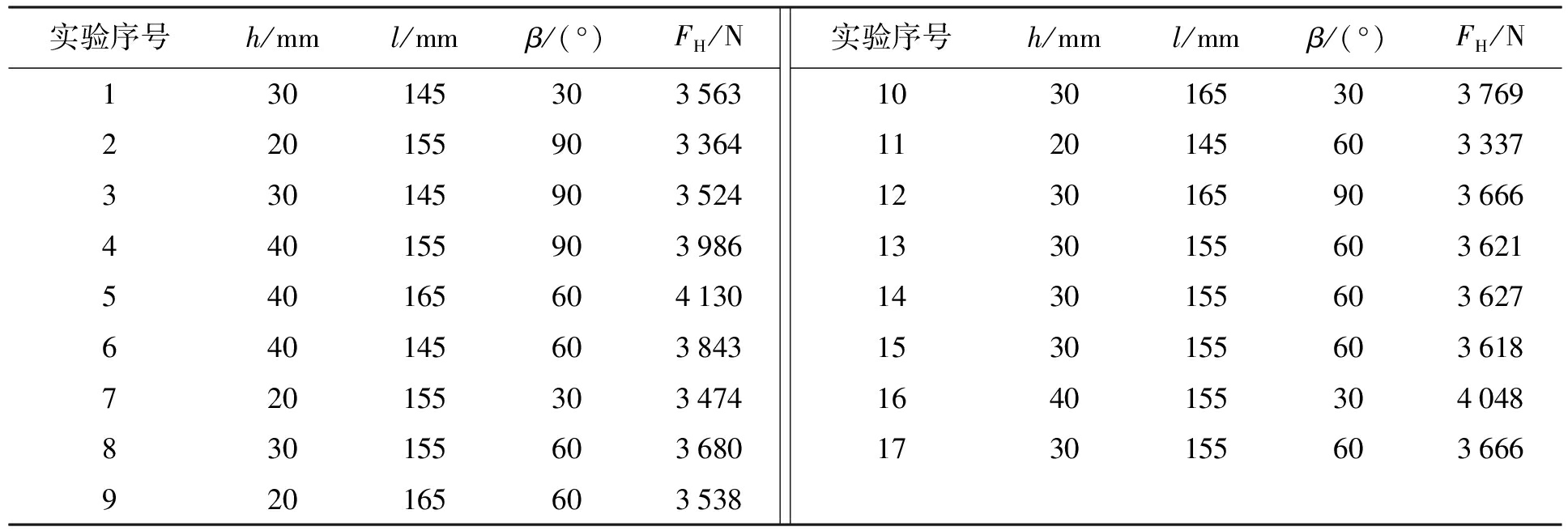实验序号h/mml/mmβ/(°)FH/N130145303563220155903364330145903524440155903986540165604130640145603843720155303474830155603680920165603538实验序号h/mml/mmβ/(°)FH/N10301653037691120145603337123016590366613301556036211430155603627153015560361816401553040481730155603666