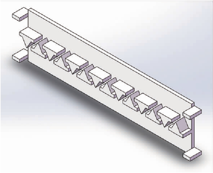 为了研究履带板受到的剪切力与履带板花纹数量的关系,对不同数量履带板进行仿真分析.选用履刺高度为30 mm、履带板节距为155 mm、拔模角度为60°的履带板数据,实验输出结果为履带板受到的全部反力.以两块履带板为例,结构如图11所示.