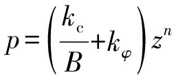 式中:p为法向应力;kc为土壤粘聚变形模量;kφ为土壤内摩擦变形模量;z为土壤压缩变形量;n为土壤变形指数.当履带车辆在路面上行驶时,可以把Bekker沉积公式简化为