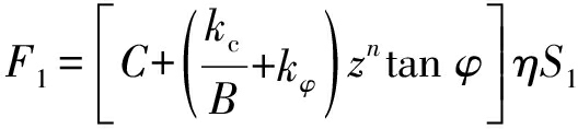 式中:S1为履带板底部的面积;S2为履刺底部的面积.作用于履带板底部和履刺底部的水平剪切力F1和F2计算公式为
