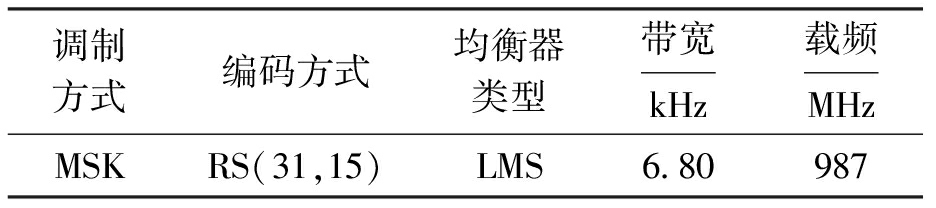 调制方式编码方式均衡器类型带宽kHz载频MHzMSKRS(31,15)LMS6.80987