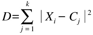 为权重特征向量的K均值.依据上述权值及准则函数进行聚类处理,获取K均值聚类输出结果,即