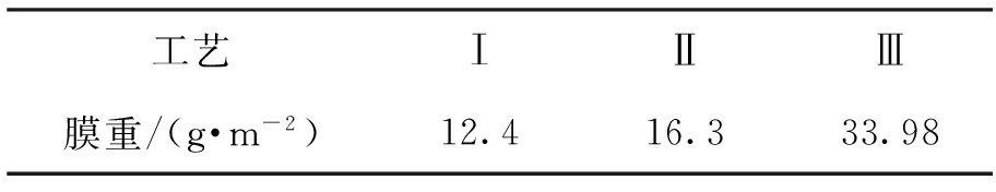 表2 不同工艺条件下磷化膜的膜重