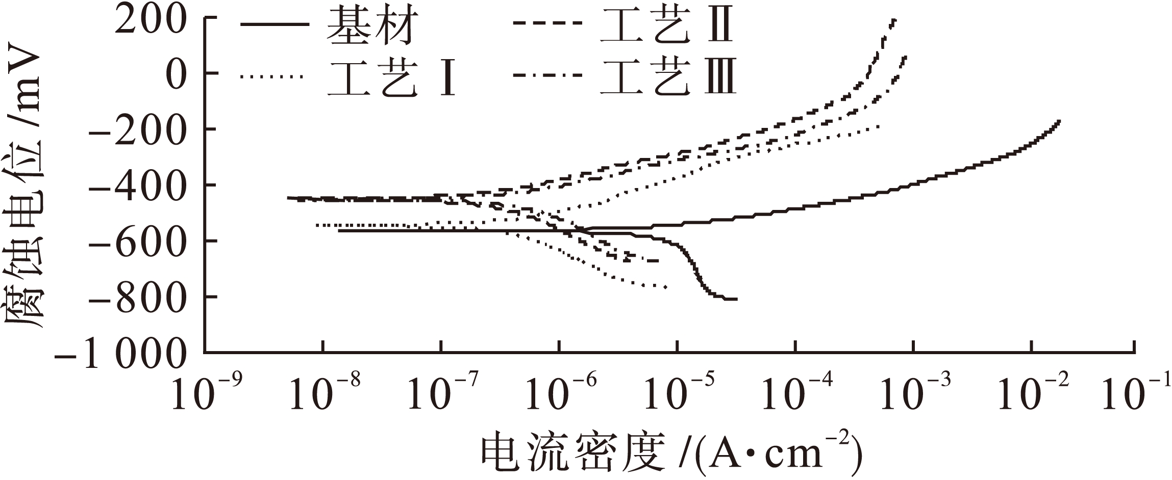 Fig.6 Potentiodynamic polarization curves for manganese phosphate coating