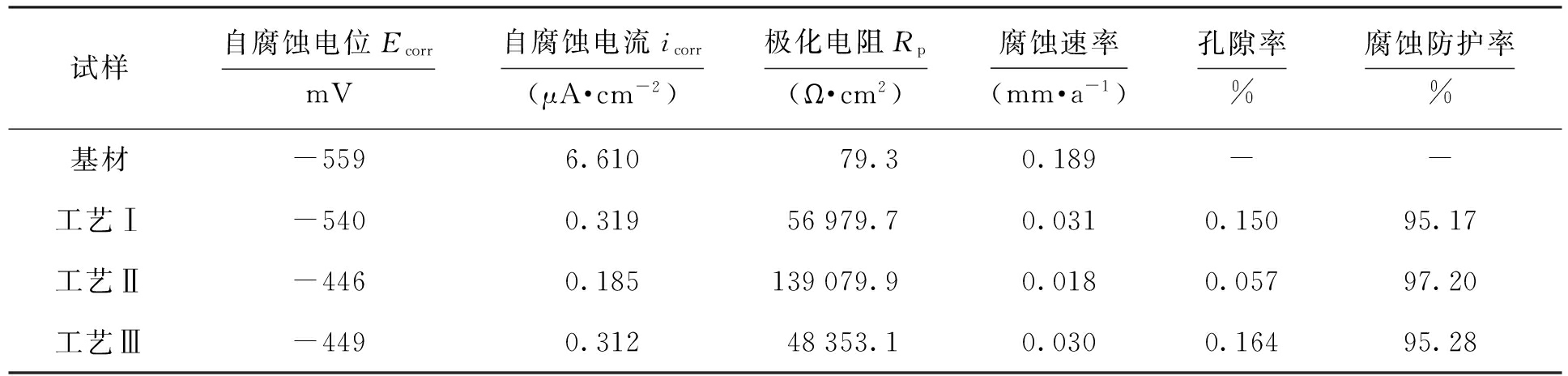 表4 磷化膜的电化学腐蚀参数
