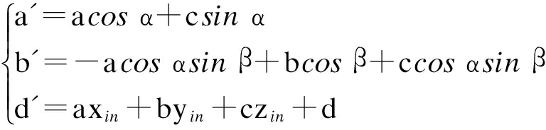 z′=-sin αcos β(x-xin)-sin β(y-yin)+cos αcos β(z-zin)=0