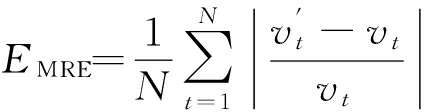 对风电场风速分别建立ARIMA、BP和NWP预测模型,并进行24小时周期的动态循环预测,统计三种预测模型为期十天的误差序列.风速预测常用误差指标有均方根误差(RMSE)和平均相对误差(MRE),用公式表示为