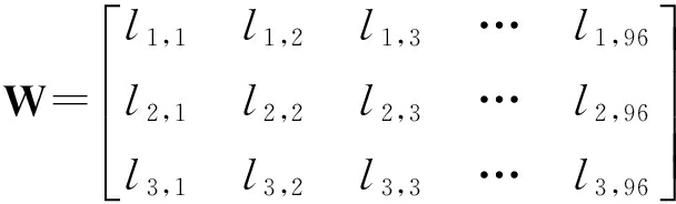6) 返回步骤2),计算各种预测方法在每个时刻的权重系数,最终获得的是一个3行96列的权重系数矩阵 W,即