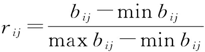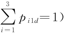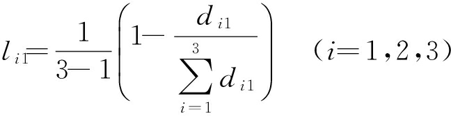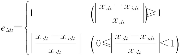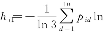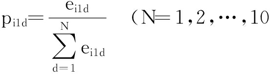 2) 在第1时刻,对三种预测方式十天的误差序列{ e i1 d }( d=1,2,…,10)进行归一化处理,即