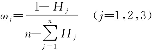 组合预测结果为 P= ω 1 P 1+ ω 2 P 2+ ω 3 P 3,式中, P 1, P 2, P 3为各单一模型的预测值.