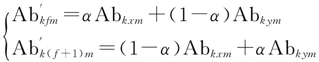 4) 多父体交叉.采用多父体交叉,即每个基因座的值由两个不同的父体交叉而成,在有限的群体规模下尽可能地增加抗体的多样性,扩大搜