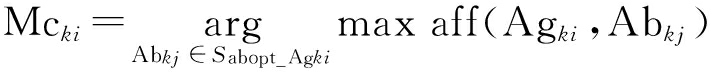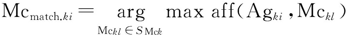 匹配记忆细胞Mc match为记忆细胞集合 S Mc k 中与抗原Ag ki 亲和力最大的记忆细胞,即