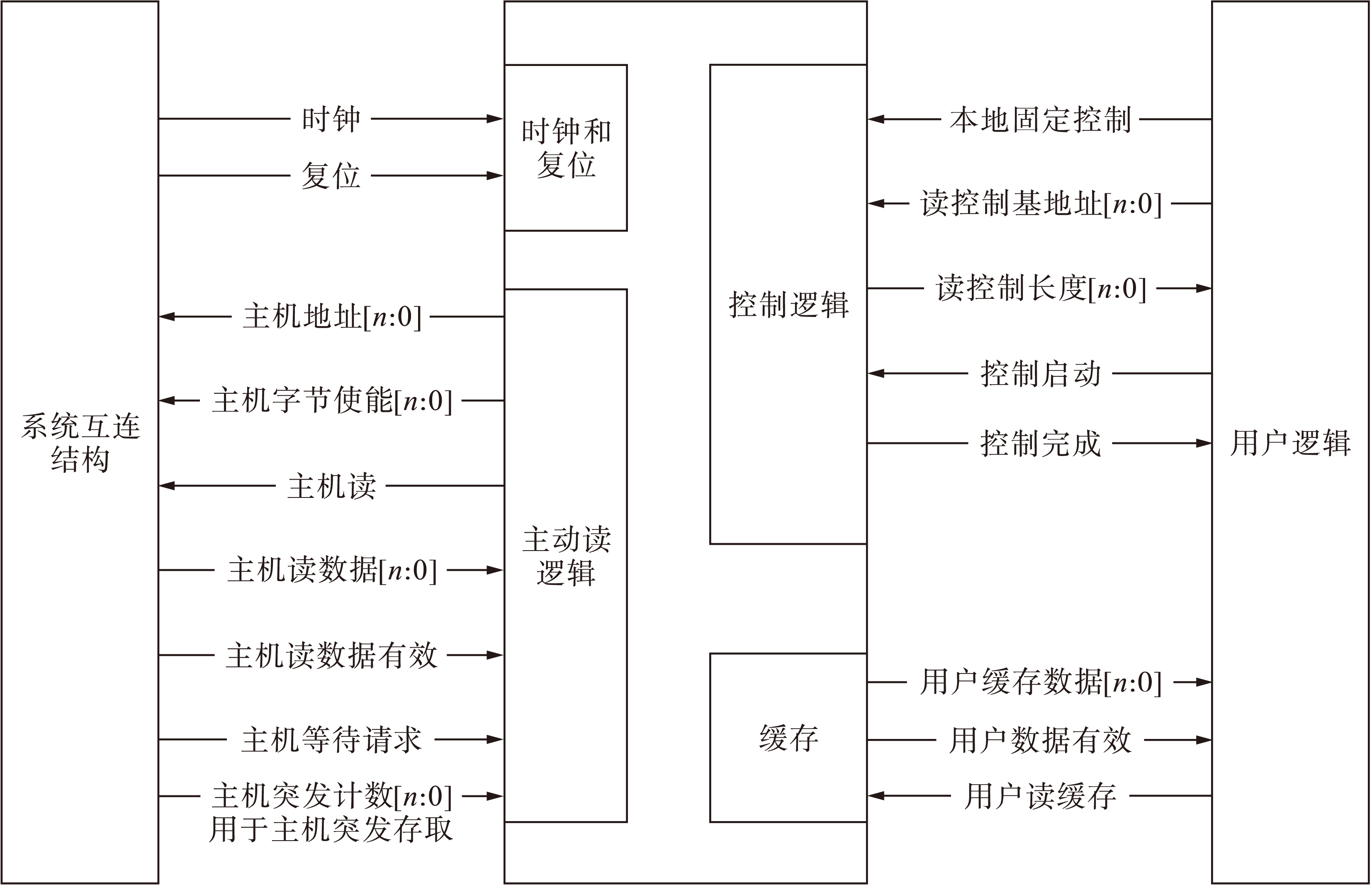 avalon-MM Master IPcore的主要功能是将各类Controller with ALTMEMPHY IPcore的用户接口统一为相对固定的读写控制和读写FIFO接口,这样可以保持用户逻辑接口的兼容性.将用户关心的设计集中在用户逻辑和Controller with ALTMEMPHY IPcore的设计上,图4为avalon-MM Master IPcore的Read Master功能框图.