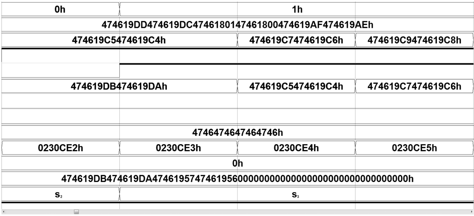 图8、9为写入与读出数据局部时序图,为将写入与读出的数据做对比,可写入一个数据为64′h474619C5474619C4,读出数据也为该数据,可证明数据的准确性.