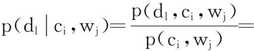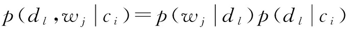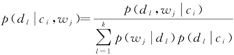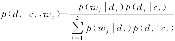 故隐含语义 d l 相对于给定观察对象( C, W)的条件概率分布为
