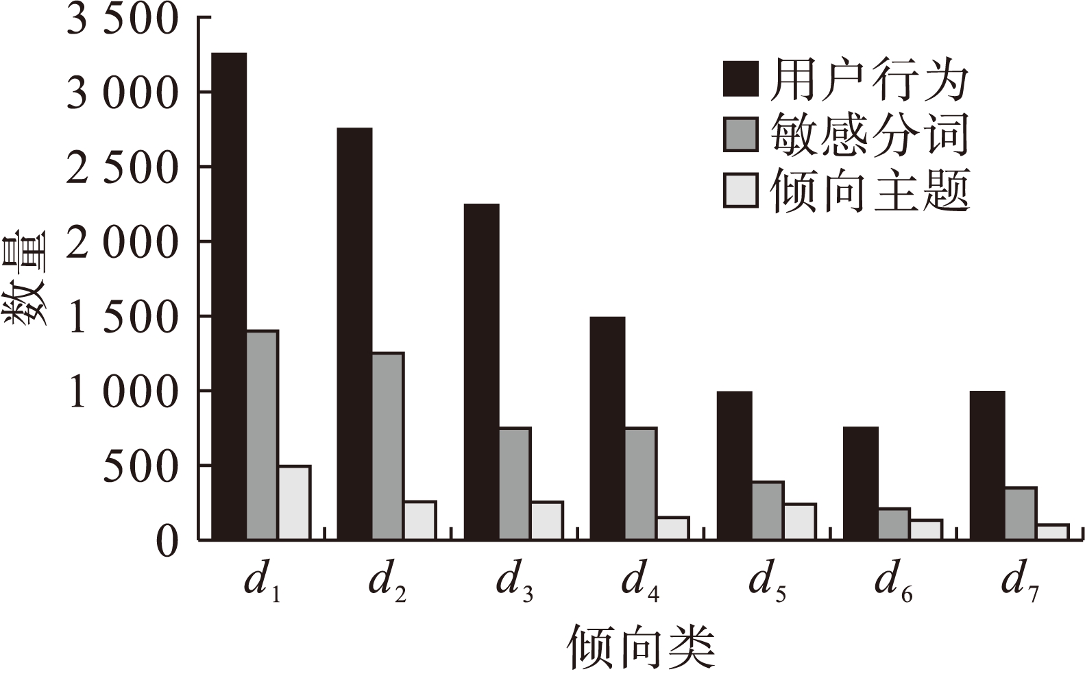 图2 用户行为、敏感类型与倾向主题对比