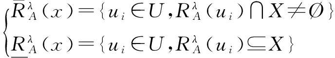 RS粗糙集(Rough set,RS)理论通过集合模糊运算,构造出上下近似集来标定有效数据的边界,解决了含糊环境下的逻辑推理问题 [23-24].保持住数据集主要维性、忽略次要属性是数据集化简的基本手段.