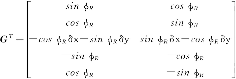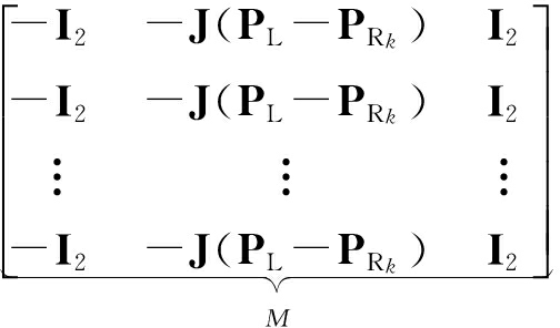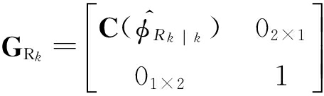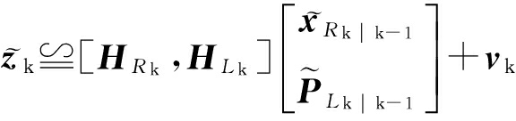 式中, R k P L =C T (φ R k )(P L -P R k ),为k时刻路标相对于机器人的位置.测量函数是非线性的,首先进行线性化处理,线性测量误差方程描述为