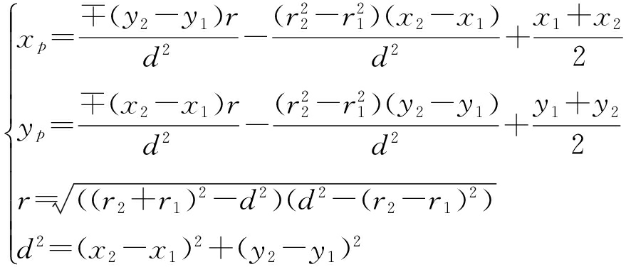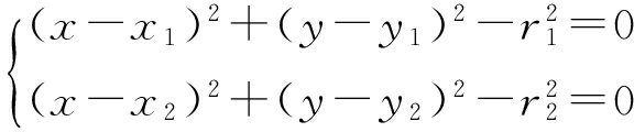 机器人在( x 1, y 1),( x 2, y 2)两个位置分别观测同一个特征( x, y),观测值分别为 r 1, r 2,则相应观测路标的位置为 P L 1 ( x L 1 , y L 1 ), P L 2 ( x L 2 , y L 2 ).若定义两个圆方程为
