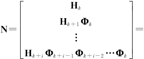 针对式(20),采用李导数方法计算能观测矩阵.由计算结果分析可知,n阶李导数和一阶李导数具有线性关系,为计算方便,采用一阶李导数计算能观测矩阵,去掉全0行,得到观测矩阵为