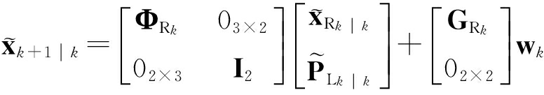 预测过程主要是利用预测模型更新预测方程中当前状态的先验值,实时推算下一时刻的状态变量和误差协方差,以便为下一个时刻最优化估算奠定基础.由于路标位置不发生变化,EKF预测方程形式为
