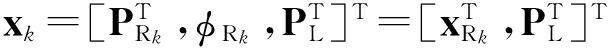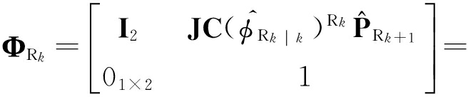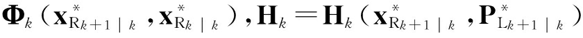 式中,H R k ,H L k 为关于h的雅克比矩阵,分别对应机器人位姿和路标位置,表示为