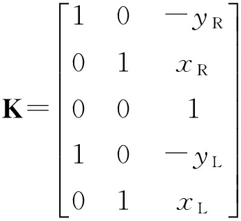 (1)式中: v为线速度; ω为角速度.在传统EKF-SLAM算法中,全局坐标系下的状态变量包含机器人位姿以及路标位置. k时刻状态变量定义为