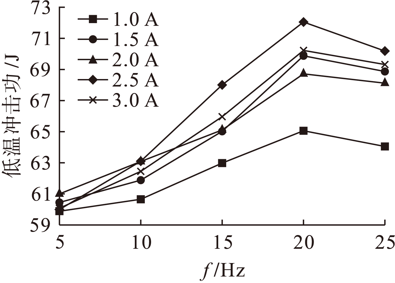 图6 焊接接头的低温冲击功随磁场频率的变化
