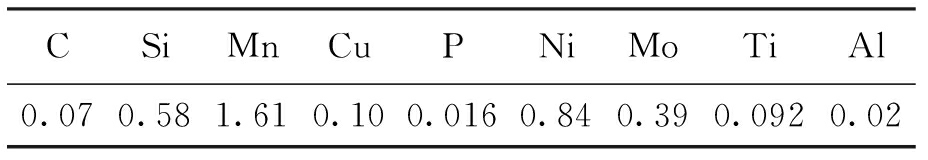 试验母材为WQ960,其抗拉强度为980 MPa,且规格为200 mm×60 mm×6 mm.选用JM-100为填充焊丝,其抗拉强度为715 MPa,直径为1.2 mm.母材和焊丝的化学成分分别如表1、2所示.