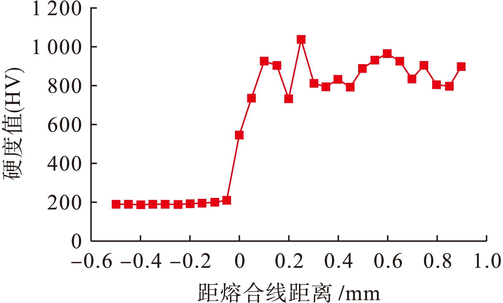 图9 CO2激光熔覆层的硬度曲线