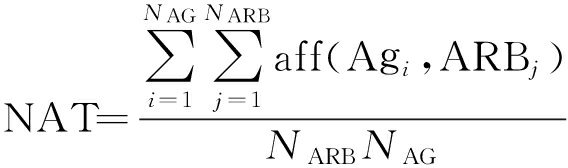 连接阈值NAT为所有ARBj∈Sarb与所有抗原Agi∈Sag之间匹配程度的平均值,即