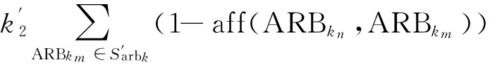 计算ARBj两两之间的相似度(即匹配程度),若大于NAT就建立连接,否则不连接.每一组互联的ARB所构成的子网络代表一个模式类,即第k个子网络为Sarbk={ARBk1,ARBk2,…,ARBkn,…,ARBkNARBk},其中,NARBk为子网k中相互连接的ARB的个数.