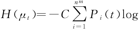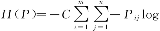 采用最大信息熵来描述这一演变过程:假设某用户有m种情绪(维度分类),并且每种情绪强度划分为n个级别,那么就具有nm个情绪状态.将此情绪空间(π)中的某个情绪状态分布定义为Pij,即第i种情绪维度下第j种强度的状态分布,则情绪熵表示为
