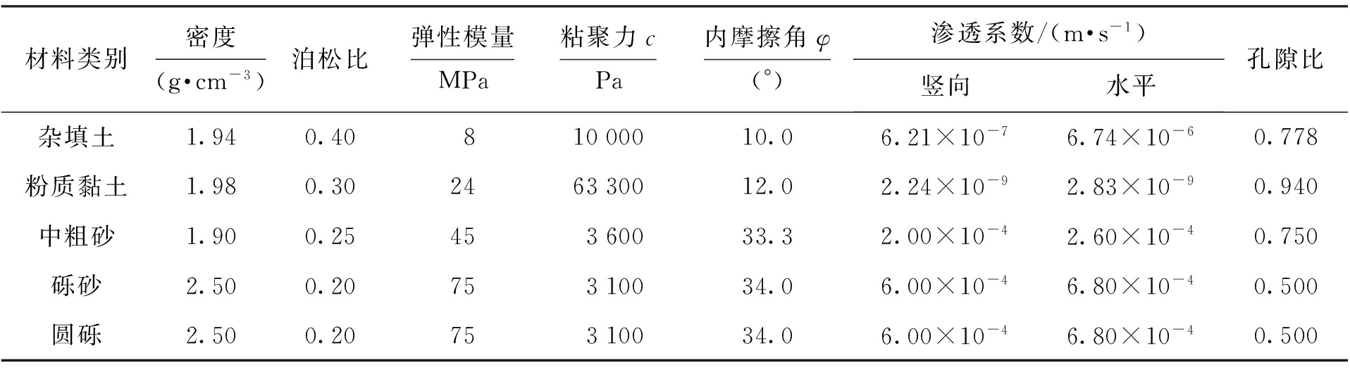 表1 基坑土层的物理力学参数