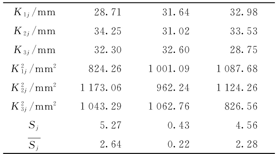 注:K1j、K2j、K3j分别为同一因素对应不同水平的位移之和;Sj为偏差平方和;