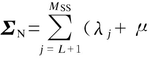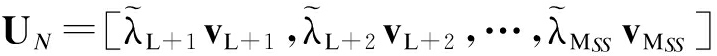 式中:(vL+1,vL+2,…,vMSS)为原始噪声子空间的特征向量;MSS)为校正后的噪声特征值,因此