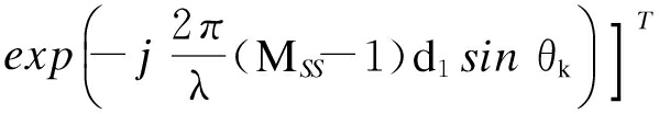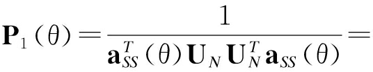 由此可看出,此阵列流型同有MSS个阵元的ULA阵列流型相同.于是可以构造如下SS MUSIC算法的空间谱函数