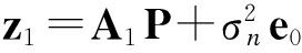 式中,e0∈C((M2-2)/2+M)×1,为除了第(M2/4+M/2)个元素是1,其余元素均为0的列向量.最后把矩阵z1分成(M2/4+M/2)个重叠的子阵,其中,每个子阵有(M2/4+M/2)个元素,第i个子阵的阵元位置为