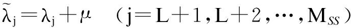 式中:λj为原噪声特征值;μ为校正值;j为校正后的噪声特征值.