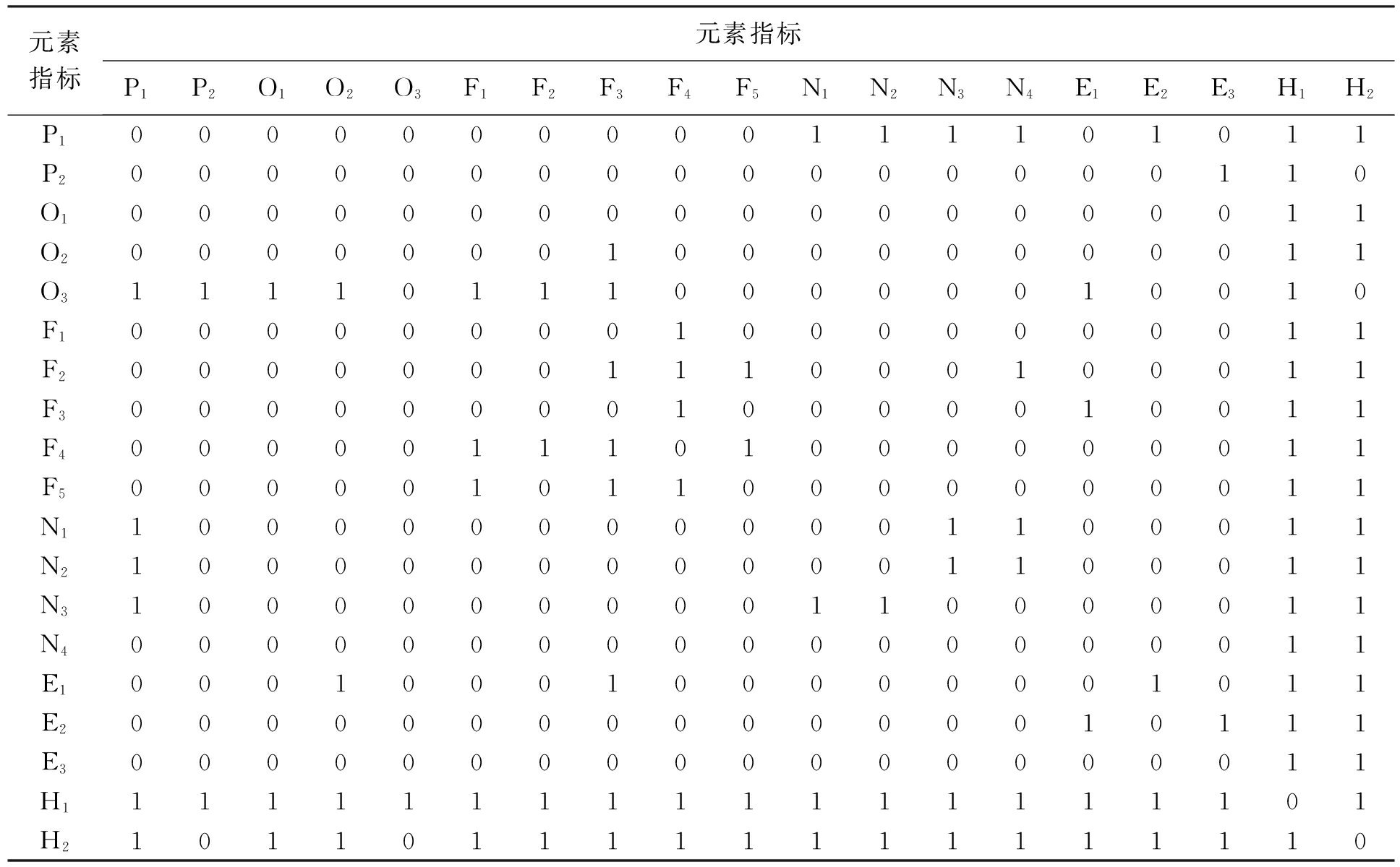 各评价指标元素之间的相互影响关系如表2所示.“1”表示行指标元素会影响列指标元素,“0”表示不存在影响关系.