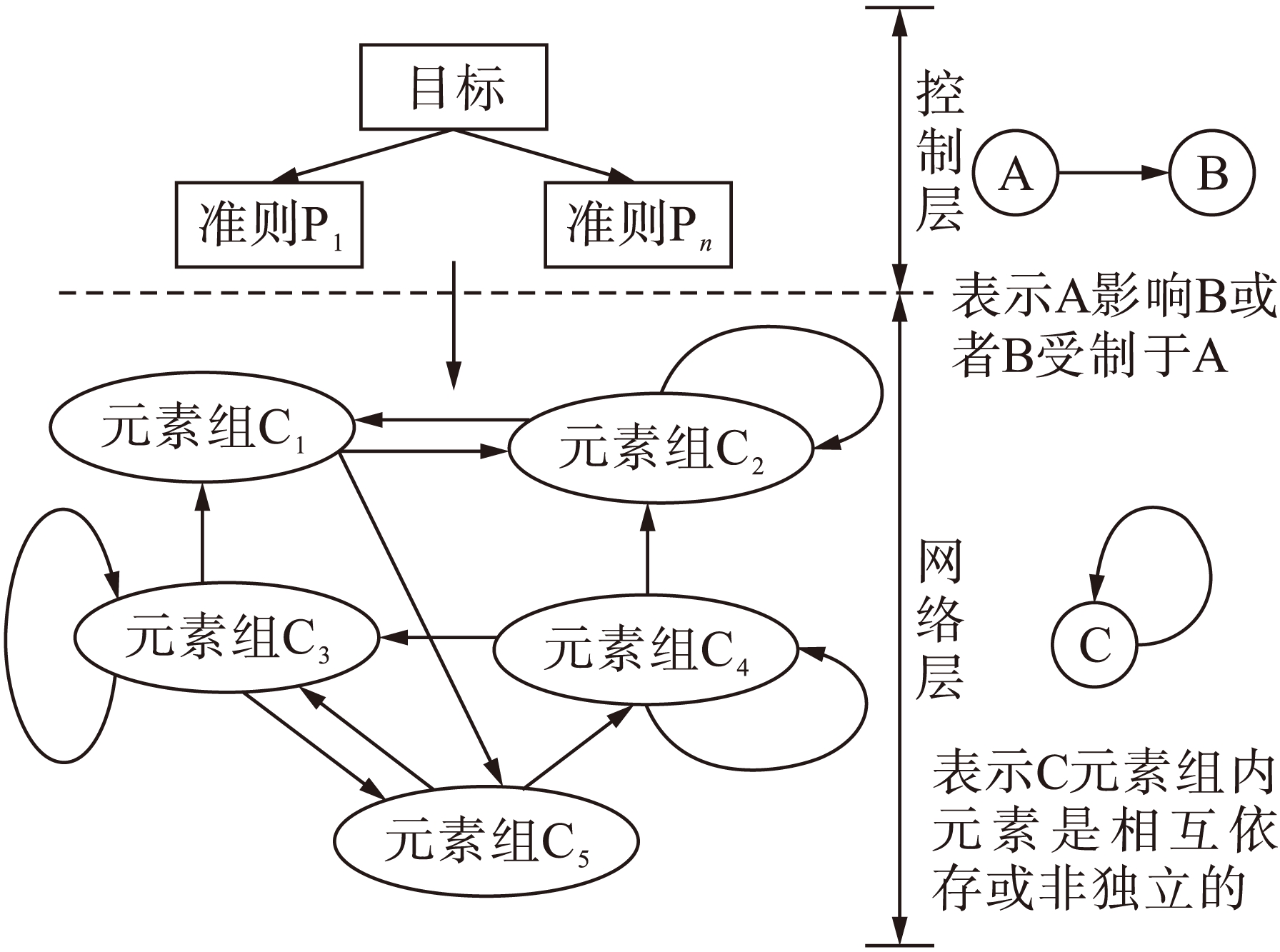 FANP方法由ANP和模糊综合评价法结合组成.ANP结构一般包括控制层和网络层,网络层中各元素之间相互影响作用,构成一个网络结构.典型的ANP结构如图1所示.