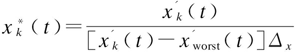 (t)为非线性数学模型全局最优解搜索方向,以步长Δx为标准,低污染控制模型适应度最大点可表示为