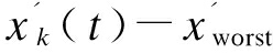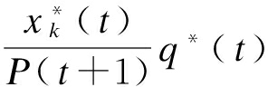 5) 将变异算子q*(t)代入群体P(t)中,得到下一代群体P(t+1),以(t)为依据进行低污染控制问题非线性数学模型全局最优解的搜索,搜索表达式为
