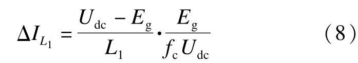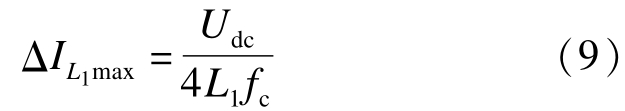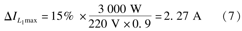 通过上文分析可知,逆变桥侧滤波电感的设计依赖于电感的纹波电流,一般情况下纹波电流取为额定并网电流的10%~20% [9].本文选取纹波电流为额定电流的15%,即可得