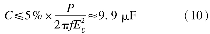 对于滤波电容 C的选取不仅要考虑上述分析的滤波参数影响特性,还要考虑其无功功率影响.滤波电容 C的取值越大,则产生的容性无功功率就越多,会引起电感 L 1具有较大的流通电流;若滤波电容 C取值较小,则要提升滤波效果就需要增加电感值,会增大滤波系统体积和成本.根据约束条件可知,滤波电容所消耗无功功率的大小一般要小于并网发电系统额定功率值的5%,则可得