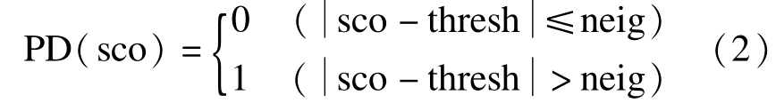 式中:sco表示对可能区域的总评分;thresh表示判断阈值;neig表示判断邻域的大小.PD(sco)的结果如果为0表示需要进行相似模板的确认,结果为1表示不需要.